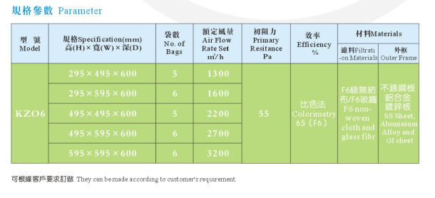 產品名稱:F6袋式中效過濾器